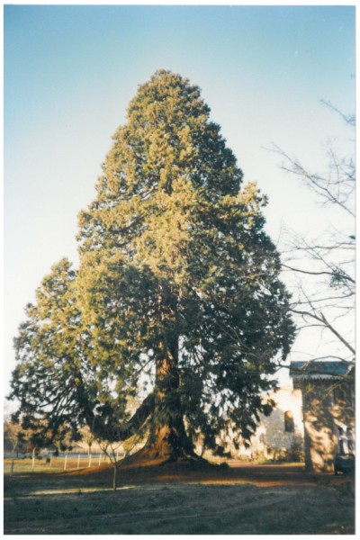 Intérêts et divers : Dans un grand parc avec thuya géant, cèdres et pins noirs d'Autriche. Cet arbre possède une réitération à 4 m de hauteur (branche semblant fonctionner indépendamment de son support), exceptionnelle par sa présence et par sa taille (circonférence de 2,66 m). Circonférence de l'arbre à sa base : 10,11 m. 3ème circ. et 3ème env. départementale de l'espèce.